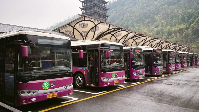 Oben auf dem Plateau, ist alles sehr gut mit einem Bus-System verbunden. Das ganze Gebiet ist nicht zusammenhängend per Bus verbunden, sondern immer nur verschiedene Ecken. Die Zwischenstücke muss man erwandern oder die Seilbahn und Aufzug nutzen. Wir versuchen die chinesische Karte, die scheinbar auch für chinesische Hirnwindungen gedacht ist, zu durchschauen, kommen dann aber gut voran und entscheiden uns für den Ten-Miles-Gallery Hike.