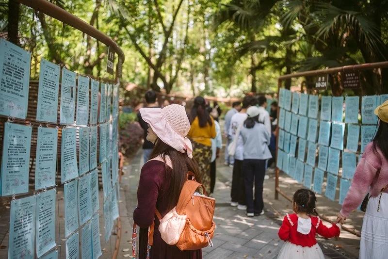Direkt auf der anderen Straßenseite von unserem Hotel liegt der People’s Park, der unser erster Stopp nach dem Frühstück sein soll. Den Park würde ich als einen Full-Life-Circle-Park beschreiben. Angefangen von den Gängen, wo links und rechts DIN A4 große Annoncen heiratswilliger Männer und Frauen hängen, die so passende Partner suchen. Unsere Übersetzungs-App verrät uns, das neben Alter, Größe und Gewicht, auch Berufstand und jährliches Einkommen, scheinbar ein wichtiger Faktor ist. Häufig stehen auch die Telefonnummern der Eltern dahinter, wo man sein ernst gemeintes Interesse hinterlegen kann.